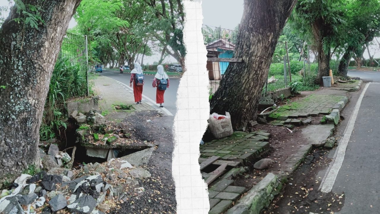 Alasannya, saat pejalan kaki turun dari trotoar menghindari lubang, maka resiko tertabrak kendaraan yang datang dari arah selatan rentan terjadi.