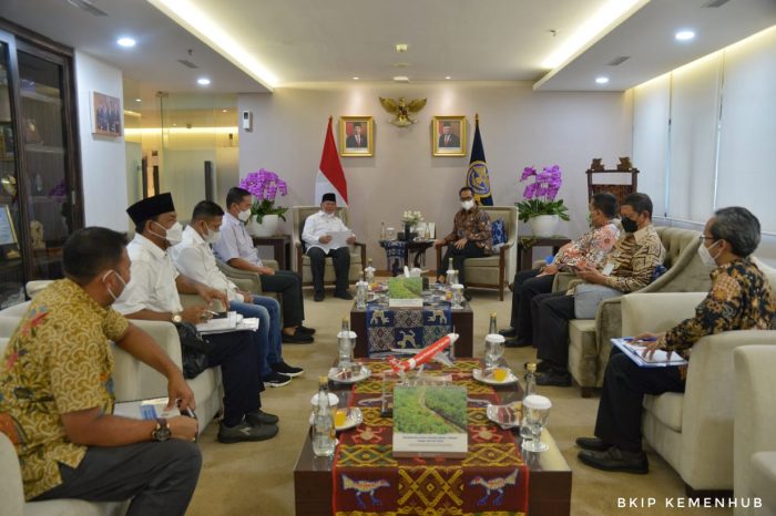 Dalam pertemuan itu, Menteri Perhubungan Budi Karya didampingi Direktur kepelabuhanan Ir.Subagyo MT, Plt.Dirjen perhubungan Udara Nur Isnain.