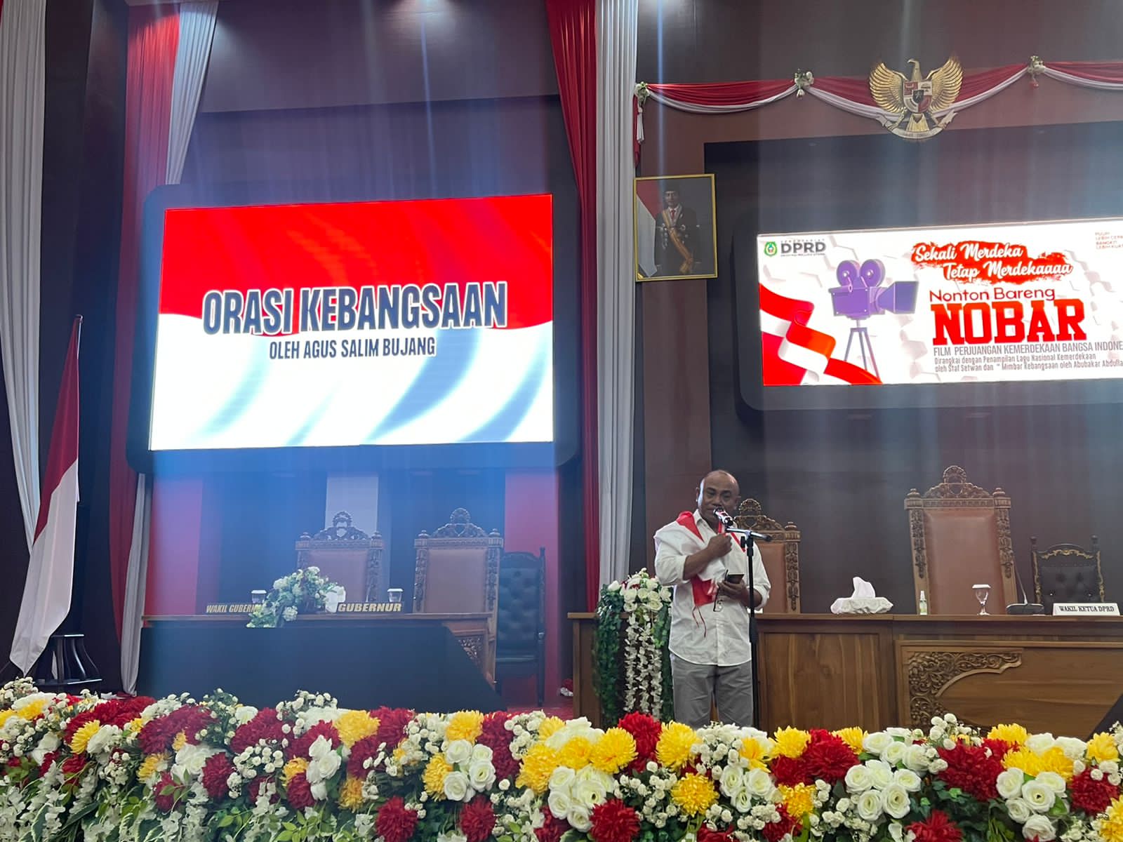 SOFIFI (kalesang) – Memperingati dan Merayakan Hari Ulang Tahun (HUT) Kemerdekaan Republik Indonesia (RI) yang ke-77. Sekretariat Dewan Perwakilan Rakyat Daerah (DPRD) Provinsi Maluku Utara (Malut) menggelar orasi kebangsaan dan nonton bareng (Nobar) film perjuangan Merah Putih.