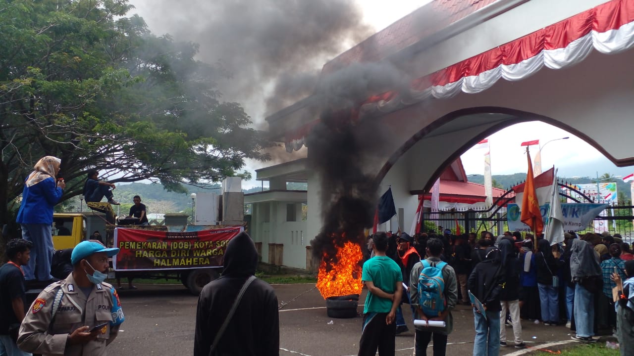 Puluhan massa aksi menuntut Pemerintah Provinsi dan DPRD provinsi untuk mempercepat Daerah Otonomi Baru (DOB) bagi Sofifi sebagai Ibu kota provinsi Maluku Utara, kemudian menyelesaikan permasalahan harga BBM, dan kasus kekerasan seksual.