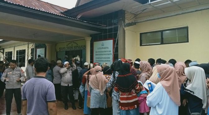 TIDORE (kalesang) – Ratusan warga Kota Tidore Kepulauan (Tikep) berebut 1.500 paket sembako di Polres Tidore, Selasa (4/10/2022) sore.