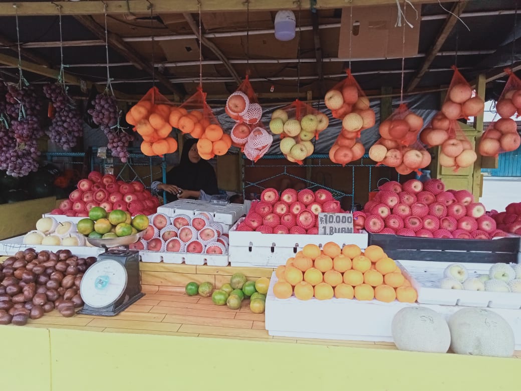 Berdasarkan pantauan kalesang.id, empat lapak yang menghadap ke arah gunung Kie Matubu itu berjualan berbagai jenis buah-buah dengan harga yang bervariasi.