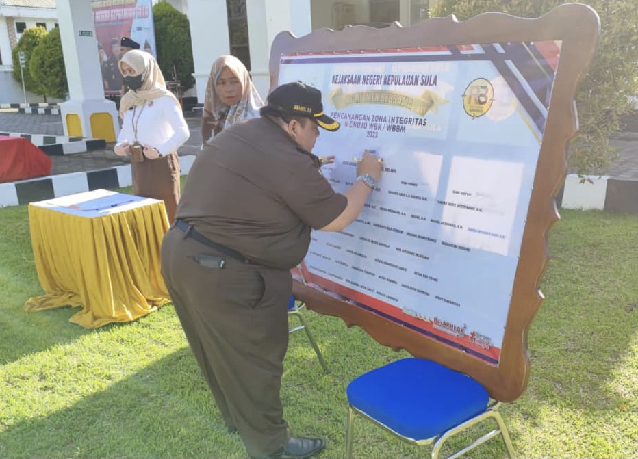 SANANA (Kalesang) – Kejaksaan Negeri (Kejari) Kepulauan Sula, Provinsi Maluku Utara, gelar apel pencanangan dan penandatanganan komitmen bersama zona integritas menuju Wilayah Bebas Korupsi (WBK) dan Wilayah Birokrasi Bersih Melayani (WBBM).