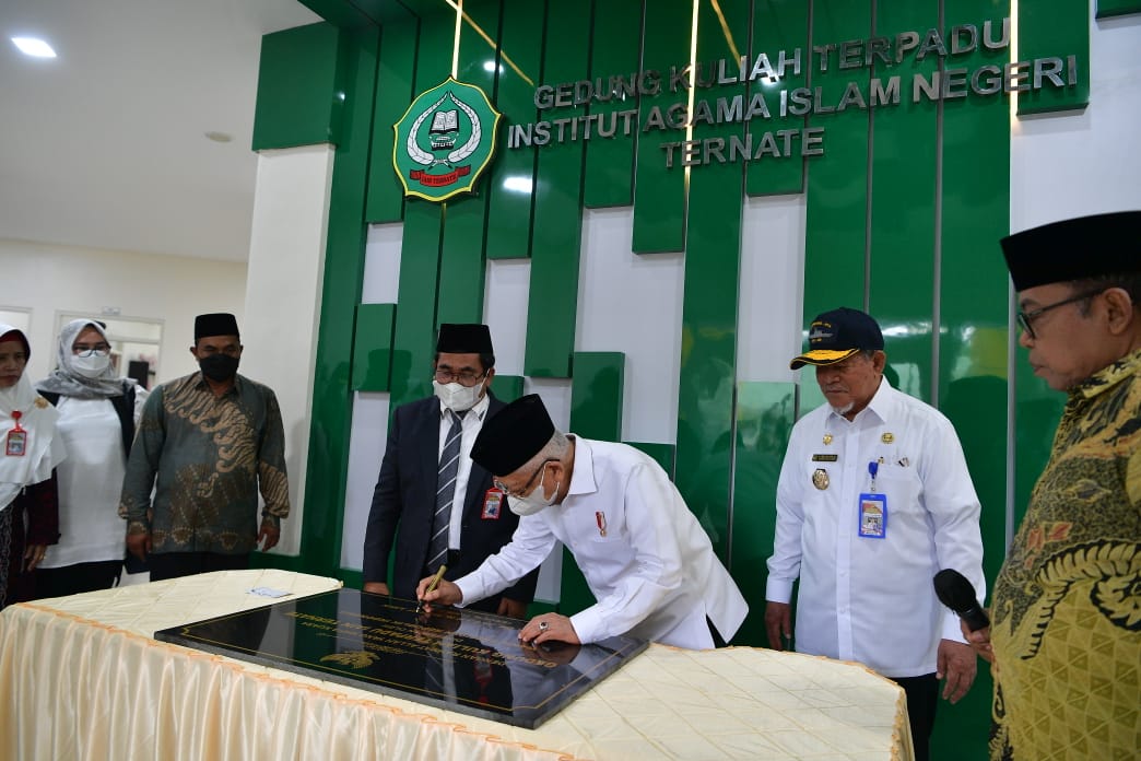 TERNATE (kalesang) – Gedung kuliah terpadu Institut Agama Islam Negeri (IAIN) Ternate Maluku Utara, diresmikan Wakil Presiden RI Ma’ruf Amin tersebut menelan anggaran sebesar Rp 25 Miliar lebih dengan luas mencapai 2.600 meter persegi dan miliki 8 laboratorium.
