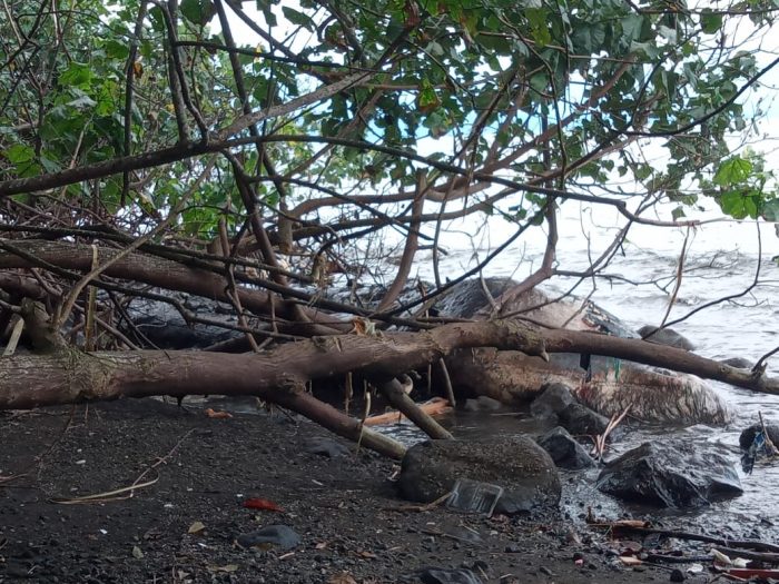 Ulys menambahkan, saat ini karena air laut mulai pasang, bangkai paus sudah terpukul ombak sehingga tersangkut di ranting-ranting pohon pantai jadi sulit untuk ditarik ke laut.