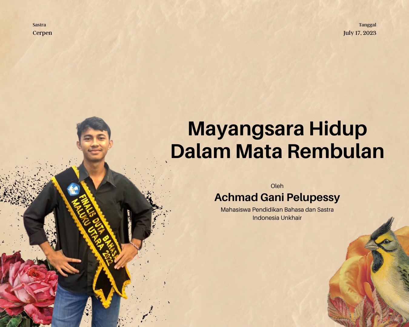 Kau Mayangsara, hidup dalam mata rembulan. Sungguh kau sudah meredupkan matamu, elokmu, hanya karena hujan malam ini. Ucap lelaki bergurau.