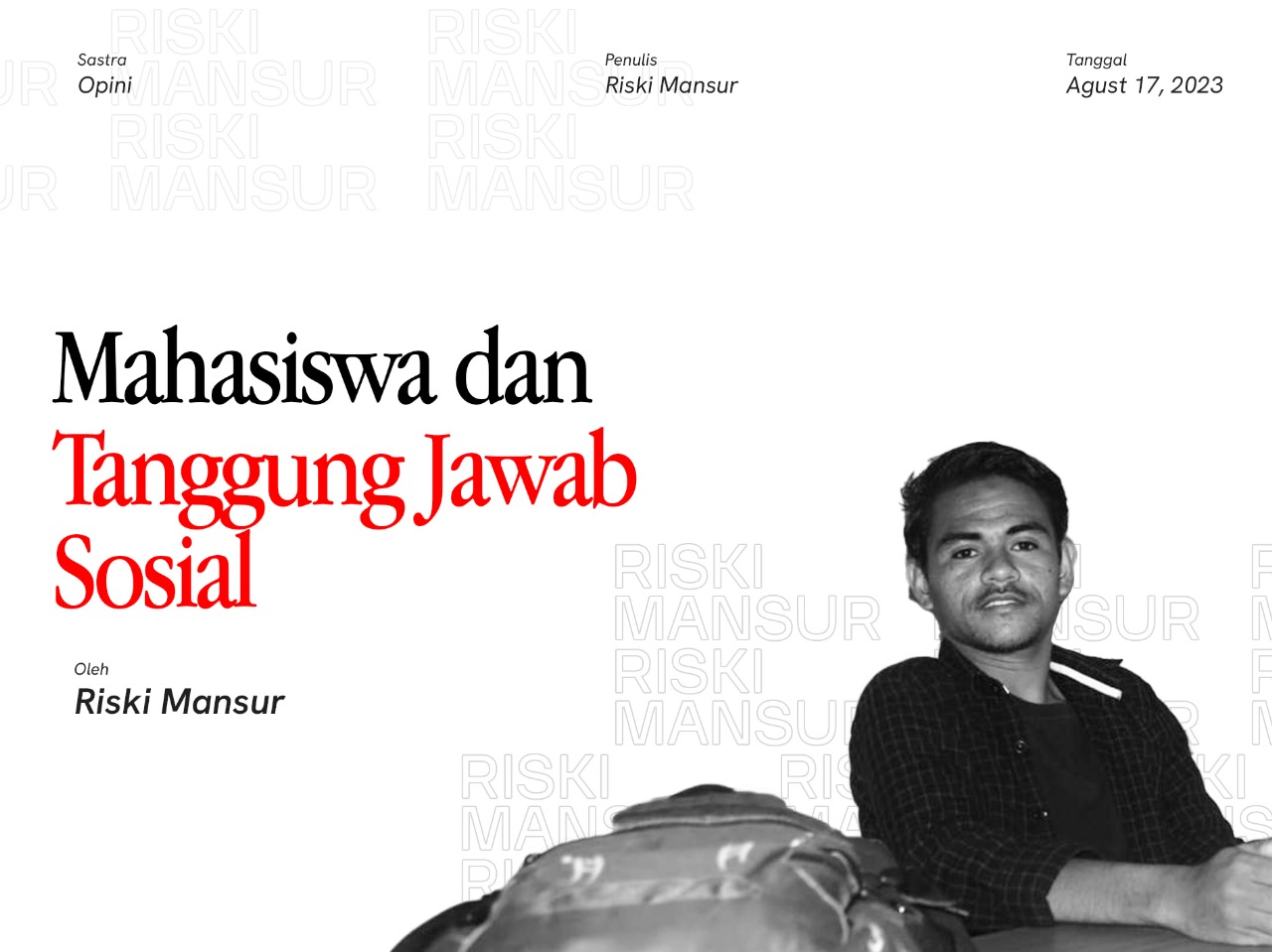 Melihat berbagai macam problem sosial yang terus terjadi sekarang ini mengajak kita sebagai kaum muda yakni mahasiswa untuk merespon persoalan sosial yang terjadi. Karena Mahasiswa yang dalam kehidupanya tidak dapat memberikan contoh, dan perubahan yang baik berarti telah meninggalkan amanah dan tanggung jawab sebagai kaum terpelajar.