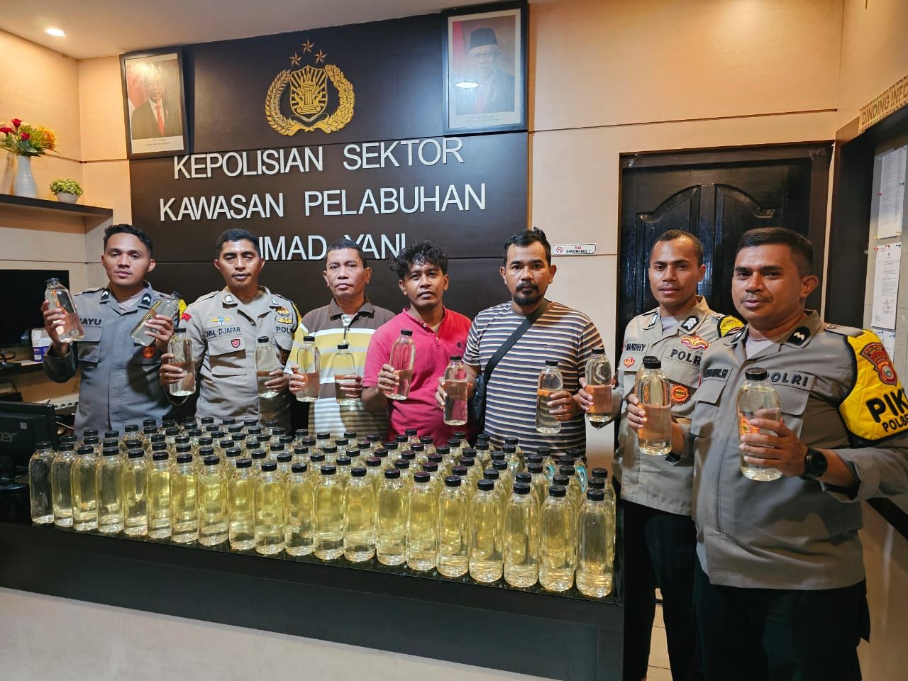 TERNATE (kalesang) – Kepolisian Sektor (Polsek) Pelabuhan Ahmad Yani kembali gagalkan penyeludupan minuman keras (Miras) jenis captikus dari Bitung, Sulawesi Utara (Sulut).
