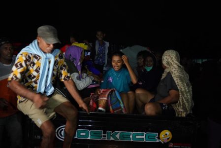 “Kalau siang, kami kadang pulang untuk memeriksa keadaan dan kondisi rumah. Tapi jelang sore kami kembali ke pengungsian.” Jelas seorang warga sebagaimana disampaikan Muhari.