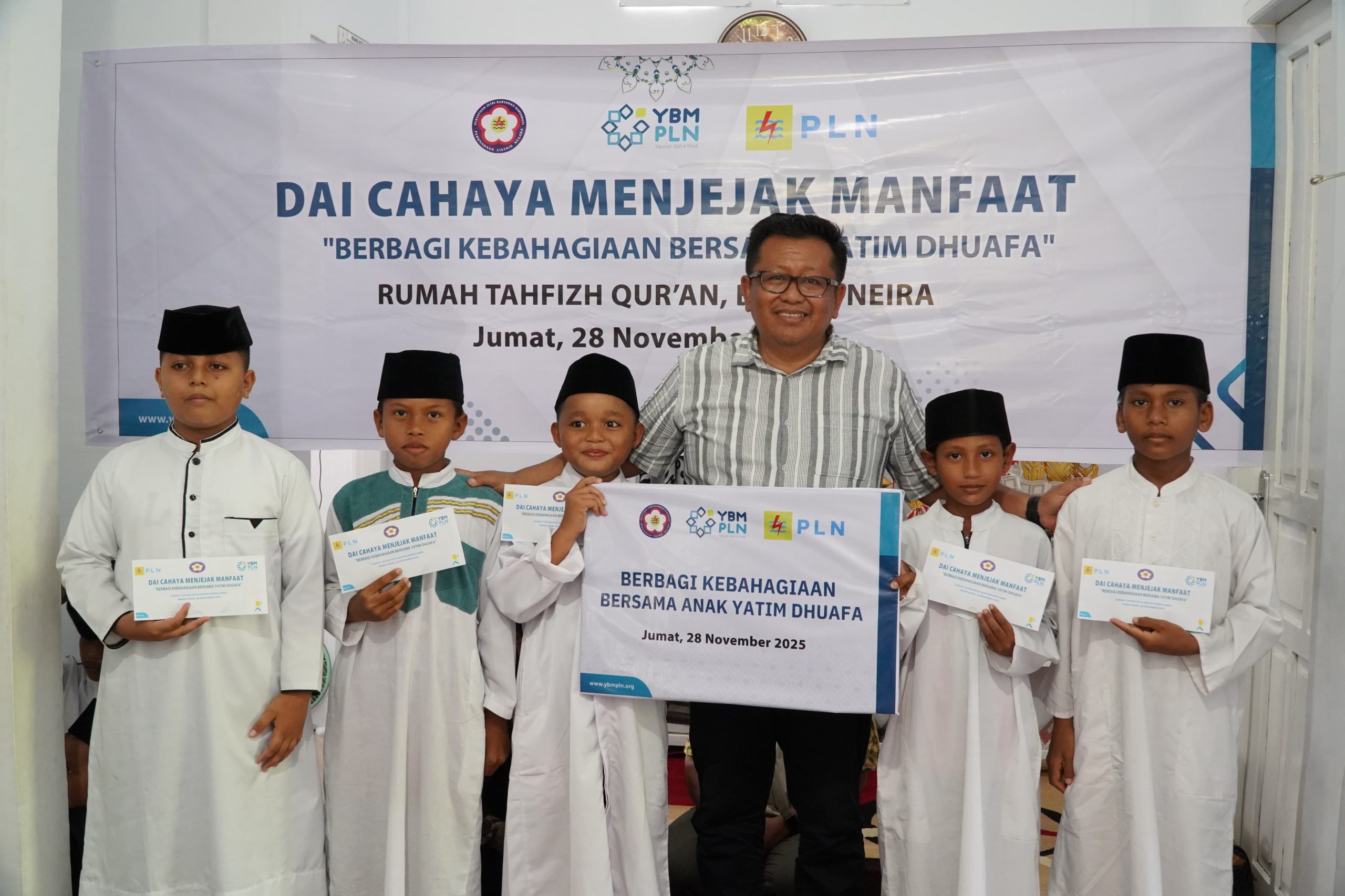 Banda,Kalesang — Yayasan Baitul Maal (YBM) PLN Unit Induk Wilayah Maluku dan Maluku Utara (UIW MMU) menggelar kegiatan “Berbagi Kebahagiaan untuk Kaum Dhuafa” di Pesantren Kota Al-Quran, Banda Besar, Jumat (28/11/2025).