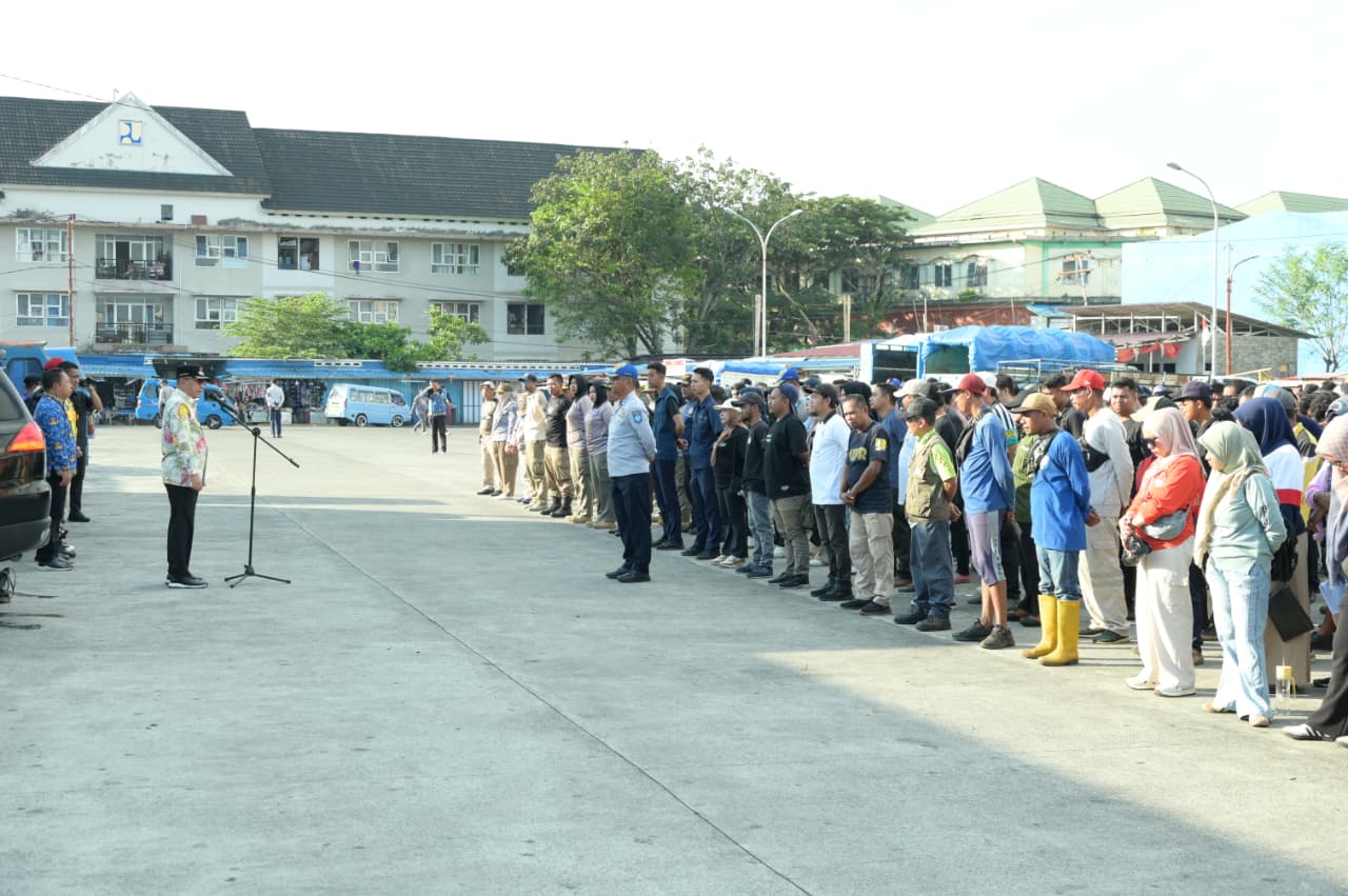 TERNATE, Kalesang – Pemerintah Kota (Pemkot) Ternate menggelar apel gabungan di Terminal Gamalama, dalam rangka penataan kembali ruang-ruang kota menjelang bulan suci Ramadan. Kamis (29/1/2026).